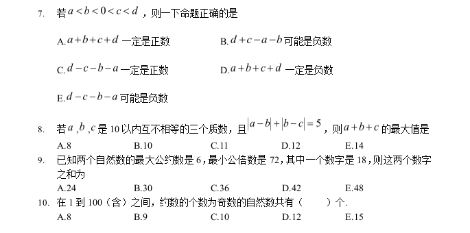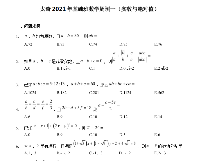 【數(shù)學(xué)】太奇MBA2021年基礎(chǔ)班數(shù)學(xué)周測(cè)一